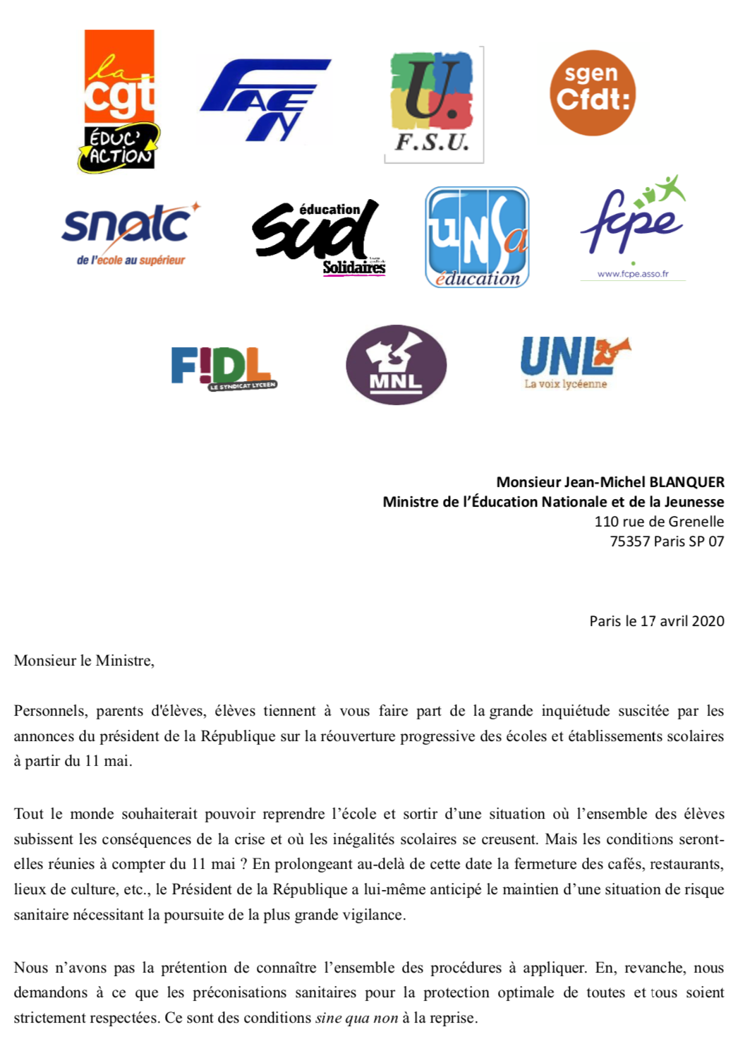 Le président de la République a annoncé une réouverture progressive des crèches et des établissements scolaires « à partir du 11 mai ». Cette annonce a immédiatement soulevé des inquiétudes légitimes des personnels et des parents. Elle a aussi suscité...